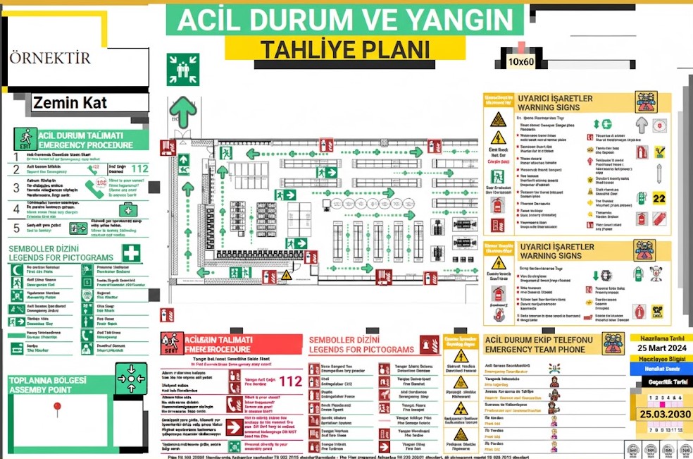 Demir İSG tarafından hazırlanan tahliye planları; mevzuata uygun, bina ile birebir uyumlu ve denetimlerde savunulabilir niteliktedir.